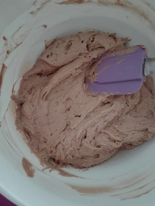 In un'altra ciotola, sbattete con le fruste elettriche il burro insieme allo zucchero a velo e il cacao, fino ad ottenere un composto soffice e schiumoso. Dopo che il budino è arrivato a temperatura ambiente, mischiatelo per un po' con le fruste elettriche e poi incorporatelo alla crema di burro.
